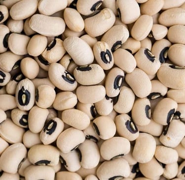 Black-eyed beans are small, cream-colored beans with a black spot, used in various dishes.