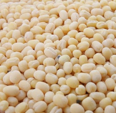 Chickpeas, also known as garbanzo beans, are round, beige legumes commonly used in salads, curries, and hummus.